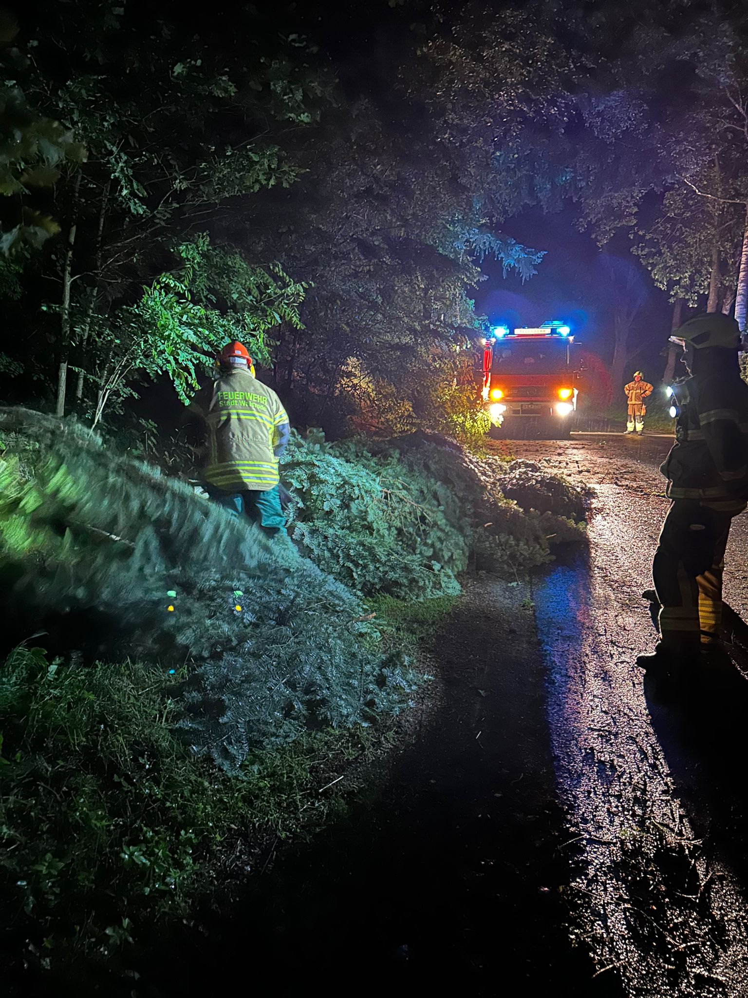 Auch in den Vormittagsstunden des Donnerstags, waren vereinzelt noch Feuerwehren im Einsatz, um Gefahrenstellen zu beseitigen, welche erst bei Tageslicht wieder ersichtlich wurden.