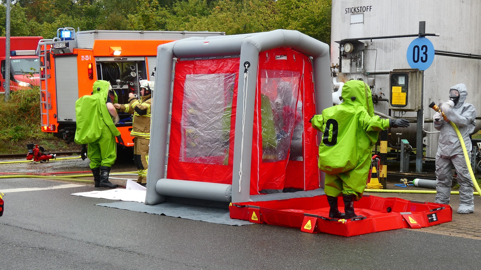 Die Übung verlief unter den wachsamen Augen von Übungsbeobachtern und auch der Aufsichtsbehörde sowie mit Unterstützung des ebenfalls im Rahmen der Übung einberufenen Ereignismanagements des Industrieparks. Das Zusammenspiel der unterschiedlichen Einheiten verlief reibungslos und die Übungsziele wurden schnell erreicht.